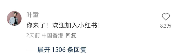 视频发出后不久,演员叶童在评论区留言互动:“你来了!欢迎加入小红书!”