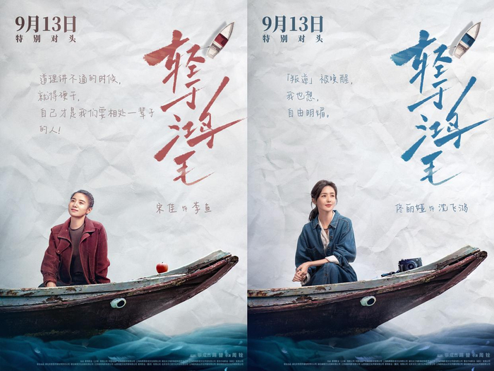 伴随角色特辑,将于9月13日正式上映的《轻于鸿毛》,也曝光了“乘风破浪”版角色海报。主要角色于各自人生的小船悉数登场,整体风格暗合轻盈治愈的影片气质,给人以重新出发续写生活新篇章的勇气。其中,每一封手写信都有所寓意,与观众形成巧妙的隔空对话,埋下了角色走向的叙事悬念。将“不服硬干”当作人生信条的李鱼正乘船肆意游荡,似乎期待着能在自己新的旅程中开花结“果”;“叛逆”被唤醒的沈飞鸿正要快乐起航,随身携带照相机准备记录旅途的风景,试图将美好回忆定格;情感博主阿飞(詹鑫 饰)勇闯直播间赛道,拥有了海也拥有了孤独的他决心大干一场;“团宠”小太阳毛豆(高舒乔 饰)面朝大海与小狗胖胖相伴,遥相回应着大家热烈的爱意;“人生只为活尽兴”的婆婆再次登上人生的航船,继续寻找自己的下一个目的地。在主创看来,海报中的每个角色都在各自的海域乘风破浪,把命运改写成了波澜壮阔的诗行,也为每一个曾被生活“揉皱”的人,提供着大胆冒险展开新地图收获新成长的精神力量。