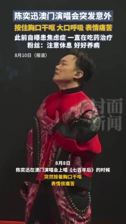 8月8日晚,歌手陈奕迅在上海演唱会中途突然捂胸干呕、呼吸急促,一度弯腰暂停表演。现场视频在网络引发热议,不少观众担忧其健康状况。有观点推测这可能是焦虑症引发的躯体化症状,也有声音认为或是职业歌手常见的呼吸道问题。真相仍需专业诊断,但这一事件让“看不见的心理痛苦如何转化为身体信号”再度成为焦点。