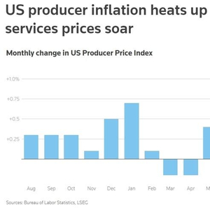 美国劳工部的数据还显示,7月份 PPI上涨主要被服务业驱动。服务业生产者价格指数当月环比涨幅达1.1%,为2022年3月以来的最大涨幅。