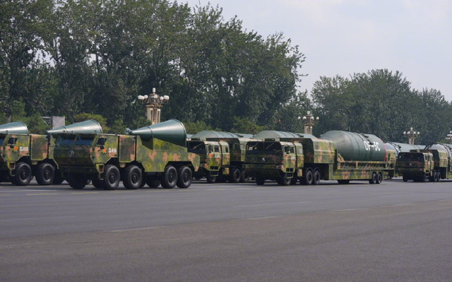 “打击范围覆盖全球”,东风-5C帅照再看亿遍。东风-5C有多大?网友:三辆军车才能拉得下。
