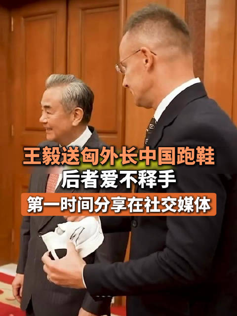 [王毅送匈外长国产跑鞋] 9月3日,中共中央政治局委员、外交部长王毅在北京会见来华出席纪念中国人民抗日战争暨世界反法西斯战争胜利80周年活动的匈牙利外长西雅尔多。 王毅向匈牙利外长西雅尔多赠送了一双国产跑鞋,后者爱不释手,表达了感谢,西雅尔多第一时间就晒在了社交媒体上。