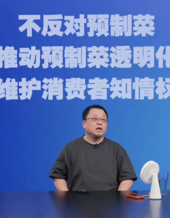 其直播背景上标注其立场:“不反对预制菜,推动预制菜透明化,维护消费者知情权。”他表示个人不反对预制菜进商场,但反对预制菜以现做菜的价格卖给消费者。