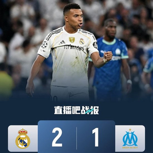 直播吧9月17日讯 欧冠联赛阶段第一轮,皇马坐镇主场伯纳乌迎战马赛。上半场,阿诺德伤退,居勒尔失误维阿爆射破门先拔头筹,罗德里戈造点姆巴佩点射。易边再战,卡瓦哈尔冲突顶牛吃到直红,维尼修斯造点姆巴佩点射双响。最终十人皇马2-1马赛。积分榜方面,皇马收获开门红3分,马赛0分。