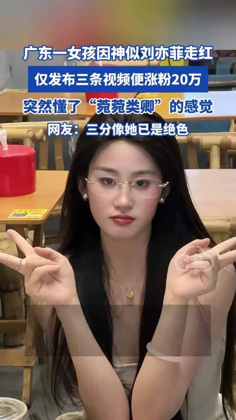 据大象新闻消息,近日,广东一女孩因神似刘亦菲走红,五官脸型都十分相像,仅发布三条视频便涨粉20万。