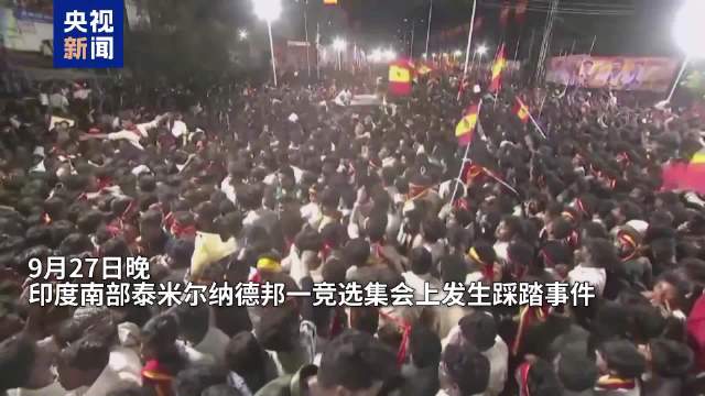 【#印度踩踏事故8名儿童死亡#】#印度踩踏事故集会由当地演员发起#9月27日晚,印度南部泰米尔纳德邦举行的一场政治集会中发生踩踏事件,造成至少39人死亡,其中包括8名儿童和16名妇女,另有40余人受伤。 踩踏事件发生在当地时间晚7时45分左右。大批参与集会的人群挤向舞台,一些人被路障绊倒,继而引发了踩踏。据目击者称,事发现场严重超员,拥挤不堪。 据报道,这场政治集会由当地一名知名演员发起,为其成立的政党参加明年初举行的地方选举进行竞选造势。 事故发生后,印度总理莫迪在社交媒体发文表示哀悼。泰米尔纳德邦政府下令开展调查。(央视新闻)
