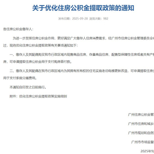 继去年8月广州发布公积金新政,允许一手房可申请提取住房公积金支付购房首付款之后,9月28日,广州住房公积金管理中心等四部门再度出手,优化住房公积金提取政策,扩大住房公积金的支付适用范围。