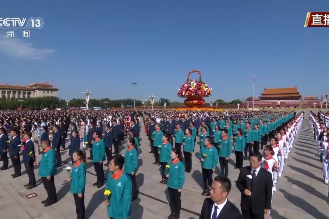 独家视频丨向人民英雄敬献花篮仪式正式开始 全场高唱国歌