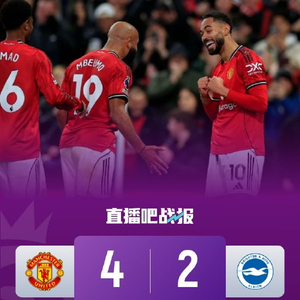 直播吧10月26日讯 北京时间10月26日0:30,2025-26赛季英超联赛第9轮,曼联坐镇老特拉福德球场迎战布莱顿。上半场库尼亚攻入红魔生涯首球,卡塞米罗传射,曼联暂2-0布莱顿;下半场舍什科助攻姆伯莫破门,维尔贝克任意球扳回一城,补时阶段科斯托拉斯再进一球,姆伯莫锁定胜局,最终曼联4-2布莱顿,收获三连胜。