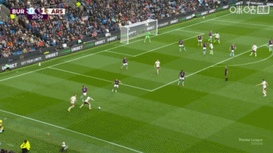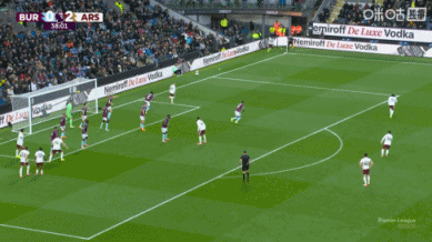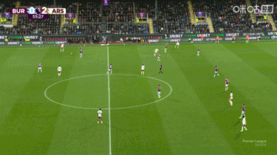 第35分钟,阿森纳快速反击,右路约克雷斯大范围转移球,特罗萨德左路送出传中,禁区内赖斯跟进头球攻门得手,阿森纳2-0伯恩利。↓