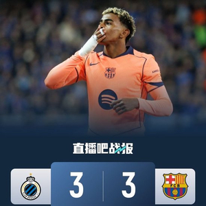 直播吧11月6日讯 北京时间11月6日凌晨4:00,欧冠联赛阶段第4轮,布鲁日坐镇扬布雷德尔球场迎战巴塞罗那。上半场特雷索尔迪破门,费兰-托雷斯接费尔明助攻迅速扳平,博尔赫斯进球帮助布鲁日再次将比分超出,巴萨暂1-2布鲁日;下半场费尔明助攻亚马尔扳平,博尔赫斯再次破门,亚马尔造成佐利斯乌龙,最终巴萨3-3布鲁日,无缘连胜。