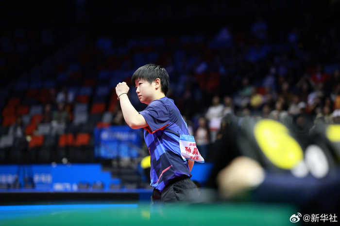 第五局,换衣归来的孙颖莎也还了一个“暴力”的7比1,比分落后的王曼昱开始了追分,一直追到了6比8,孙颖莎喊了暂停,暂停之后,两人比分仍然紧咬,9平之后,孙颖莎16比14拿下比赛。