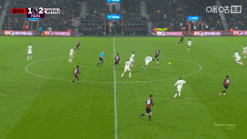 第81分钟,塞内西直塞禁区,于纳尔插上抽射破门!伯恩茅斯2-2西汉姆联↓