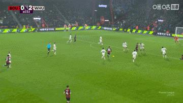 第11分钟,阿雷奥拉长传前场,威尔逊大禁区外胸部停球顺势右脚抽射,皮球窜入球门左下角!伯恩茅斯0-1西汉姆联↓