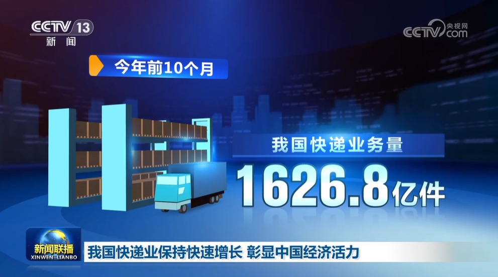 最新数据显示,今年前10个月,我国快递业务量达1626.8亿件,同比增长16.1%。从“年均百亿件”到“月均百亿件”,我国快递业务在高基数之上保持高增长,破千亿件所用时间不断缩短,今年达到千亿件的时间比2024年提前35天。
