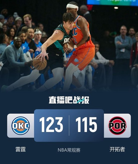 雷霆(20-1):亚历山大26分4板5助、霍姆格伦19分9板1助3帽、米切尔17分5板5助、杰伦·威廉姆斯16分8板5助3帽、乔15分4板、多特10分6板2助、肯威8分3板、维金斯5分1板4助、杰林·威廉姆斯4分6板1助2帽、华莱士3分3板4助