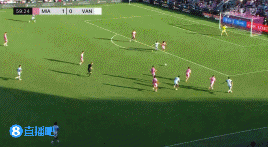 第56分钟,迈阿密国际右路传中,温哥华门将出击失误,第二点梅西头球吊空门!皮球稍稍偏出左侧立柱↓