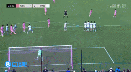 第25分钟,迈阿密国际禁区前左侧任意球机会,梅西主罚直接打门!皮球被门将抱住↓