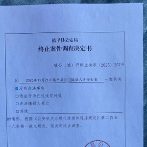 镇平县公安局的立案告知书显示,11月29日,警方对男孩家长报称的文具店老板“威胁人身安全”案行政立案调查。12月1日,警方出具《终止案件调查决定书》,认为该案中没有违法事实,决定终止调查。被侵害人有异议,拒绝在《终止案件调查决定书》上签字。