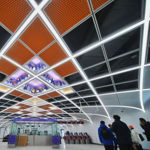 21日上午,记者来到地铁18号线回龙观西大街站,站厅宽敞明亮,顶部的藻井设计十分吸睛。据京投轨道公司二分公司副总经理李楠介绍,18号线的装修风格为“时光隧道”,以轻装、简装为主,这些藻井的设计源自18号线沿线的特色建筑。比如,线路会经过软件园站,所以有的藻井就是以各种交织的电子线路为主题。