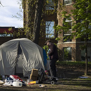 美国芝加哥:官员查看无家可归者营地 视觉中国