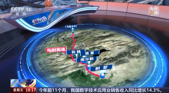 新疆巴州库尔勒市某香梨销售企业负责人 高元:乌尉高速开通前,特别是冬天,在路上要运输7个小时,香梨有可能就在路上发生一些冻害,现在时间缩短到三个半小时,我们就可以更高效地把香梨销售到乌鲁木齐。