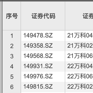 其中“21万科04”“21万科02”“21万科06”的最新价为26.67元、26.6元、25.37元,“22万科04”“22万科06”“22万科02”已低于24元。