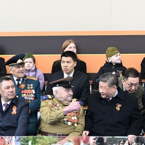 5月9日,纪念苏联伟大卫国战争胜利80周年庆典在莫斯科红场隆重举行。习近平主席和来自世界20多个国家及国际组织领导人应邀出席庆典。观礼台上,普京总统坐在习近平主席左侧,而坐在习近平主席右侧的,是一位胸前挂满了勋章的俄罗斯百岁老战士,名叫叶夫根尼·兹纳缅斯基。