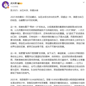 2025年,我致敬那个从未放弃的自己。致敬10岁时对着电视里大杨扬姐的身影萌生滑冰梦的少年,致敬在伤病中咬牙康复、致敬坚守赛场的战士,也致敬如今坦然转型、深耕冰雪的教育者。更要致敬这片冰场,致敬所有支持我的人,致敬竞技体育教会我的:真正的勇者,既能在巅峰时乘风破浪,也能在转型时从容笃定。