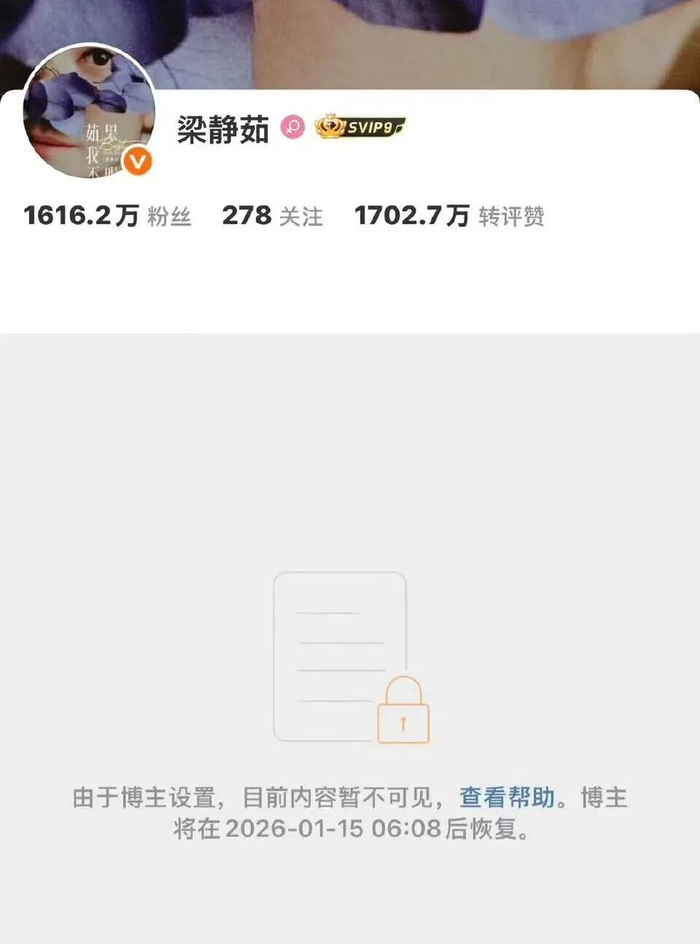 1月8日,有网友发现梁静茹的社交平台已设置不可见。