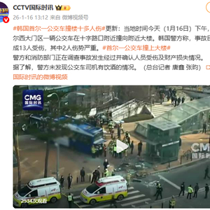 据CCTV国际时讯消息,当地时间今天(1月16日)下午,韩国首尔西大门区一辆公交车在十字路口附近撞向附近大楼。韩国警方称,事故目前已造成13人受伤,其中2人伤势严重。