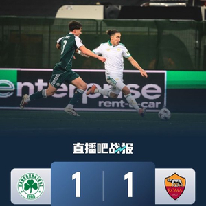 下半场补时4分钟。最终全场比赛结束,帕纳辛纳科斯1-1罗马。