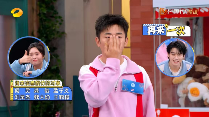 杨迪此时重复八百次推眼镜动作模仿“孟宴臣”,引发全场尖叫,而魏大勋本尊在旁边忍笑围观,还不时怂恿:“再来一次!”