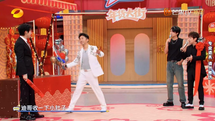 比如,杨迪开局就拿出了高科技“御剑”,一顿操作收获一众好评。不料正当他得意洋洋给大家送新年祝福时,旁边何炅一句“迪哥收收肚子”让整段“垮掉”,全场爆笑!