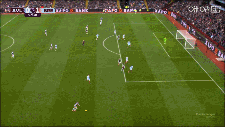伤停补时10分钟。全场比赛结束,阿斯顿维拉0-1布伦特福德。