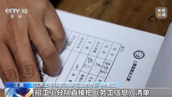 江西上栗县鸡冠山乡豆田村村民 荣黄金:招工小分队直接把“务工信息清单”送到家里头,扫码进去就有公司联系人和电话,能跟企业的人直接聊,岗位的情况也比较清楚,待遇也很不错。