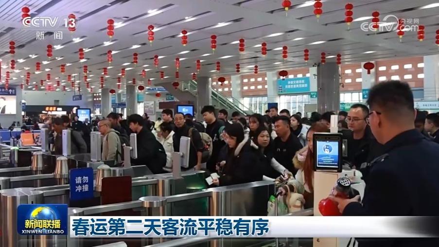 央视网消息(新闻联播):春运进入第二天,各地交通出行平稳有序。