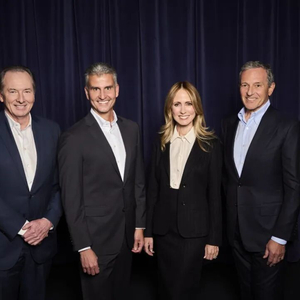 从左到右:华特迪士尼公司董事会主席James Gorman、迪士尼体验业务主席戴明哲、迪士尼娱乐联合主席Dana Walden、迪士尼首席执行官罗伯特·艾格 图片来源:迪士尼中国公众号