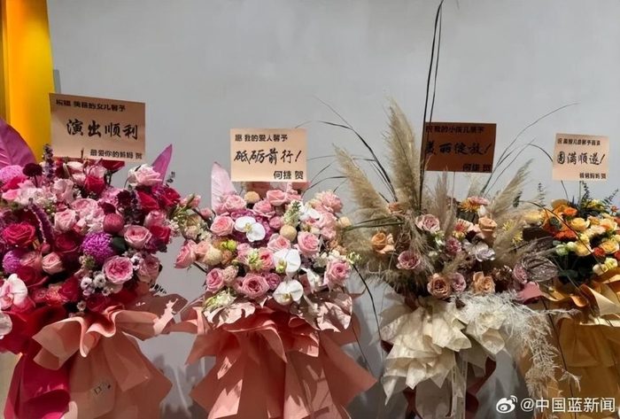 张馨予舞台剧首演成功,爸妈公婆都送花篮,老公何捷称呼她:“我的小孩儿”,迪丽热巴、张柏芝等好友送祝福