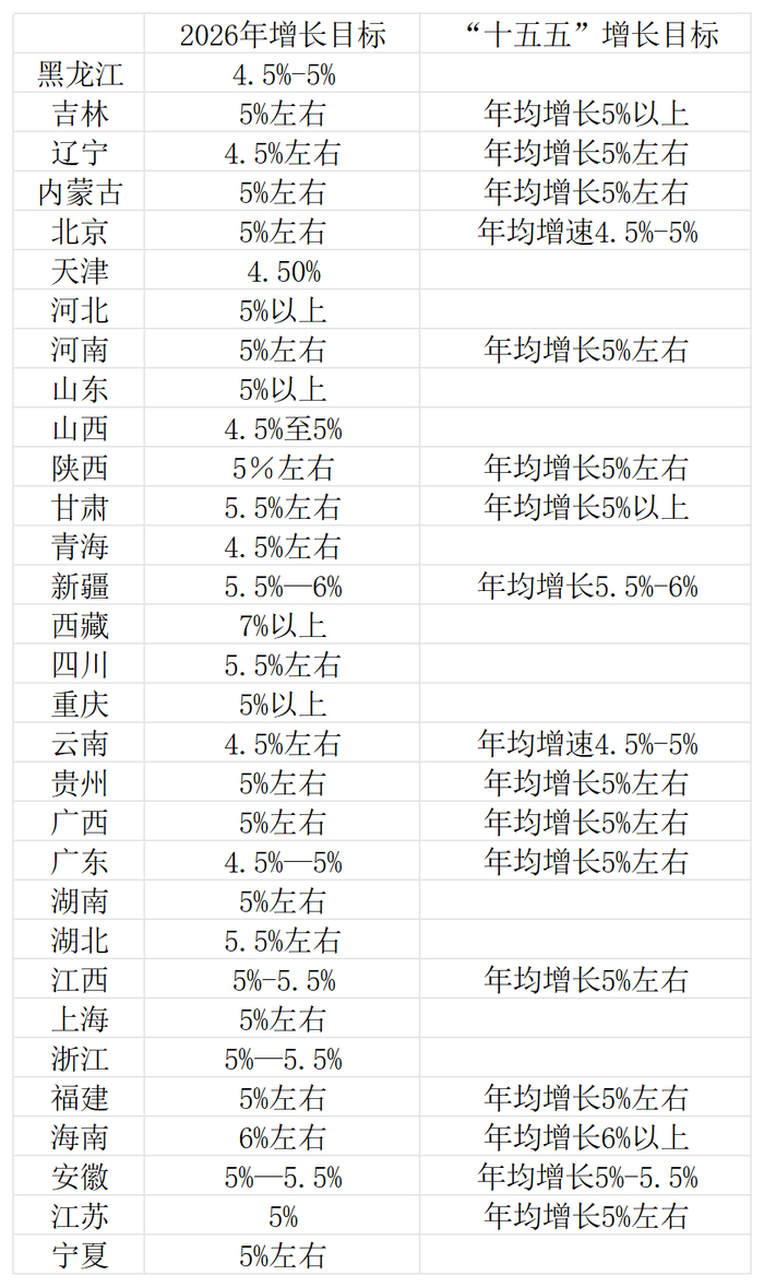 各地人代会审议通过了“十五五”规划纲要,各地未来5年的预期增长目标也已经确定。