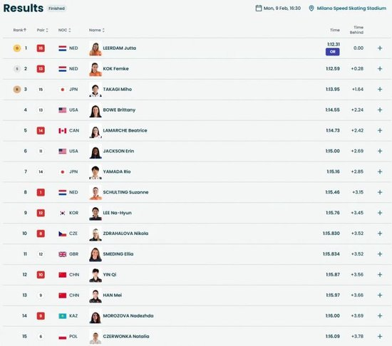 直播吧02月10日讯 米兰冬奥会速度滑冰女子1000米决赛结束,中国选手殷琦、韩梅、田芮宁均顺利完赛。