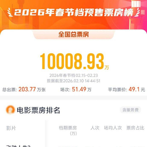据网络平台数据,2026春节档(2月15日—2月23日),档期预售总票房突破1亿!