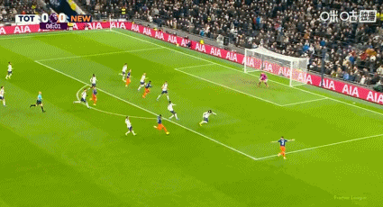 上半场补时第6分钟,佳夫门前抢点头球被扑随后补射破门,热刺0-1纽卡。↓