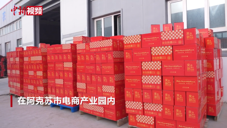 2月10日,在新疆阿克苏地区阿克苏市电商产业园内,印有“2026年阿克苏市新春大礼包”字样的红色礼盒显得格外喜庆,工人们正在将瓜子、花生、糖果、干果等零食装入礼盒,及时运送至配送点。