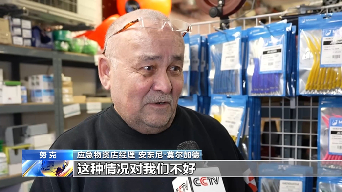 应急物资店经理 安东尼·莫尔加德:我记得是一周前的事情,来了很多顾客,买了很多储水和烹饪相关的东西。他们买的是用来储水的容器、做饭用的燃气、发电机之类的东西,全都售罄了,也许这周或者下周会再进货。