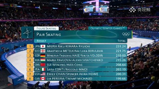 第五收官!隋文静/韩聪组合花样滑冰双人自由滑第5,日本组合夺金