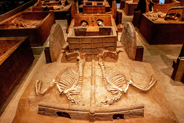安阳殷墟博物馆中的车马坑遗迹 图据视觉中国