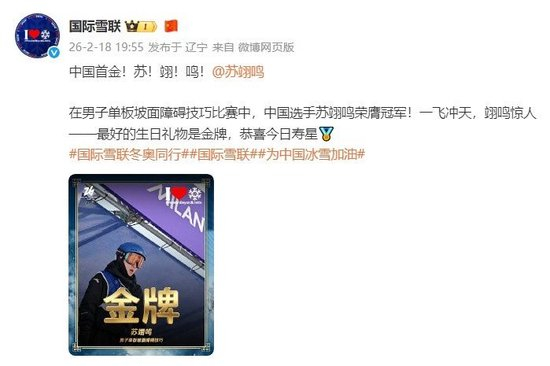 国际雪联祝贺苏翊鸣:最好的生日礼物是金牌,恭喜今日寿星