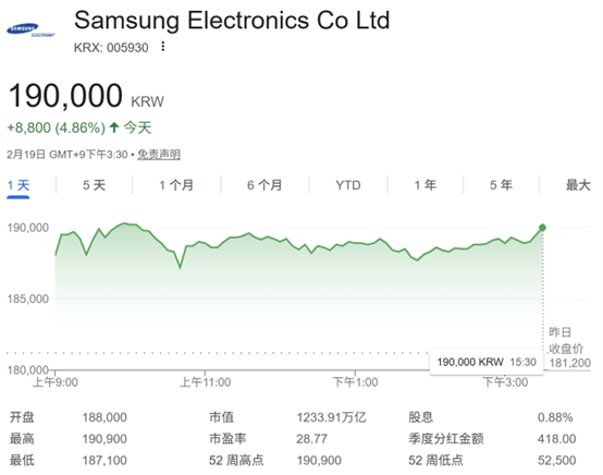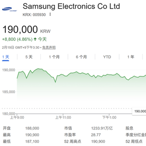 三星股价盘中一度上涨逾5%,最高触及190900韩元的历史高点。今年以来,三星股价已经累计上涨近50%,延续了2025年的迅猛涨势。