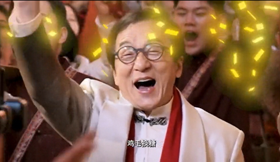 成龙坦言,“鸡毛换糖喽”的台词差点说不利索,为了情绪饱满、语气到位,他反复练习了很多遍。